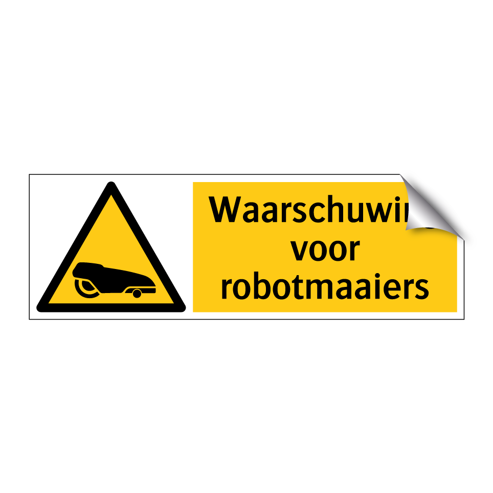 Waarschuwingsbord met de tekst Waarschuwing voor robotmaaiers