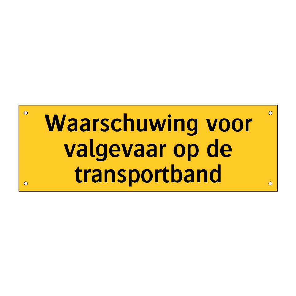 Deze waarschuwingsbord is essentieel voor het waarborgen van de veiligheid in omgevingen waar transportbanden worden gebruikt. Plaats deze bord op goed zichtbare locaties in fabrieken, magazijnen en andere industriële omgevingen om werknemers te waarschuwen voor het risico van vallen. Door de opvallende gele achtergrond en zwarte tekst trekt deze waarschuwingsbord onmiddellijk de aandacht, wat helpt om ongelukken te voorkomen. Ideaal voor gebruik in productiehallen, logistieke centra en andere werkplekken waar transportbanden aanwezig zijn. Zorg ervoor dat iedereen op de hoogte is van de potentiële gevaren en bevorder een veilige werkomgeving met deze duidelijke en effectieve waarschuwingsbord.