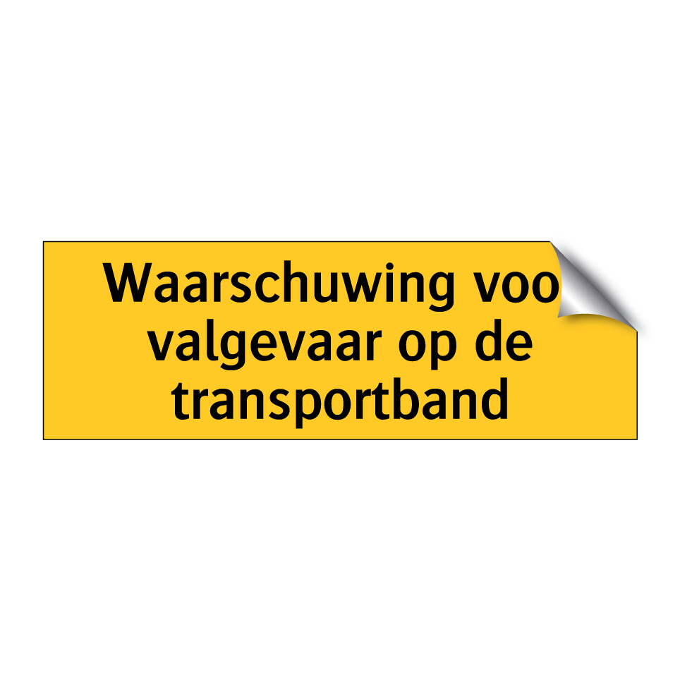 Waarschuwingsbord met de tekst Waarschuwing voor valgevaar op de transportband