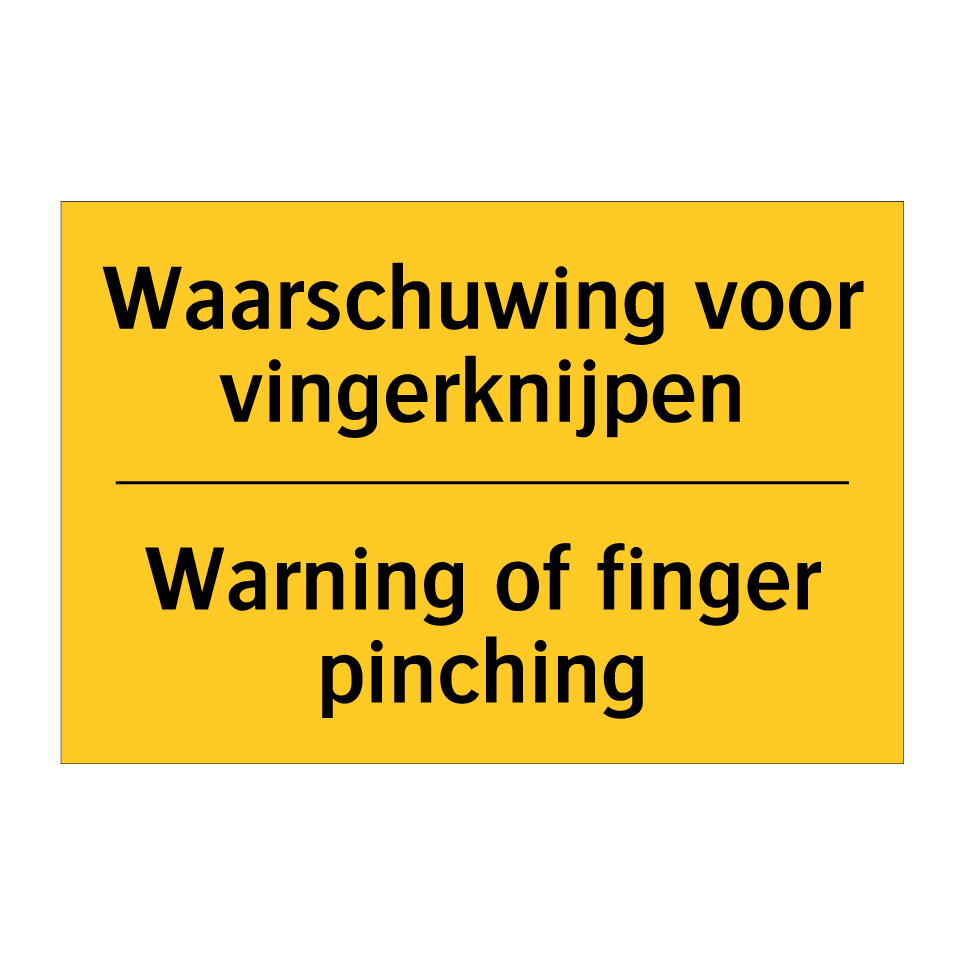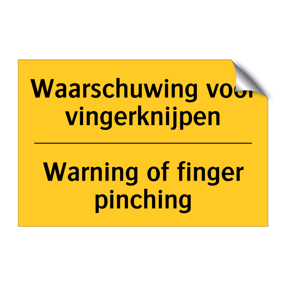 Waarschuwingsbord met de tekst Waarschuwing voor vingerknijpen / Warning of finger pinching