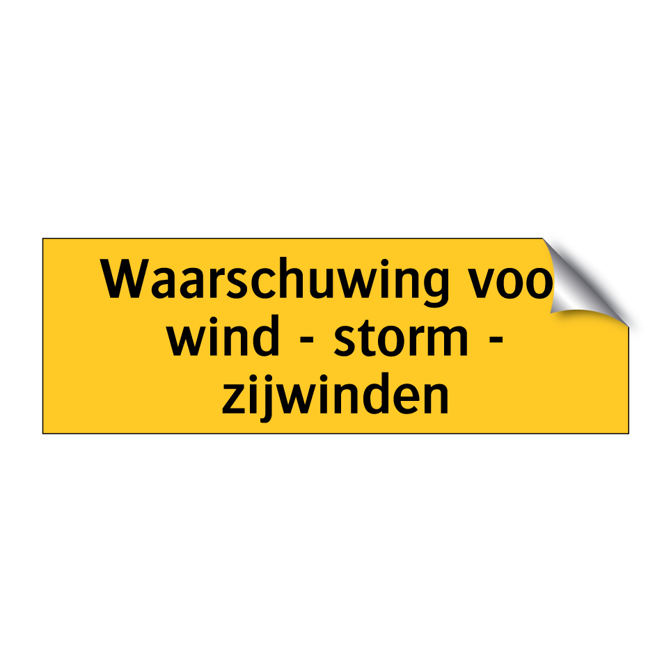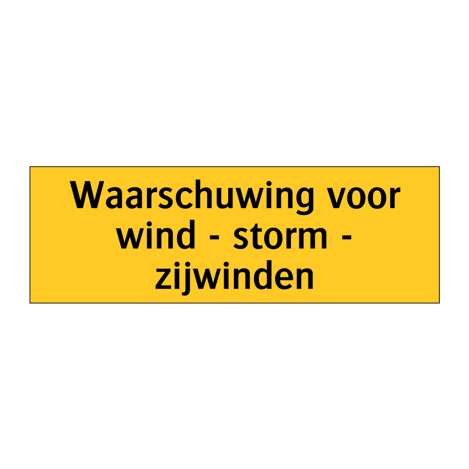 Waarschuwingsbord met de tekst Waarschuwing voor wind - storm - zijwinden