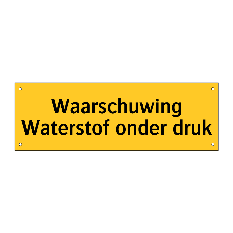 Waarschuwingsbord met de tekst Waarschuwing Waterstof onder druk