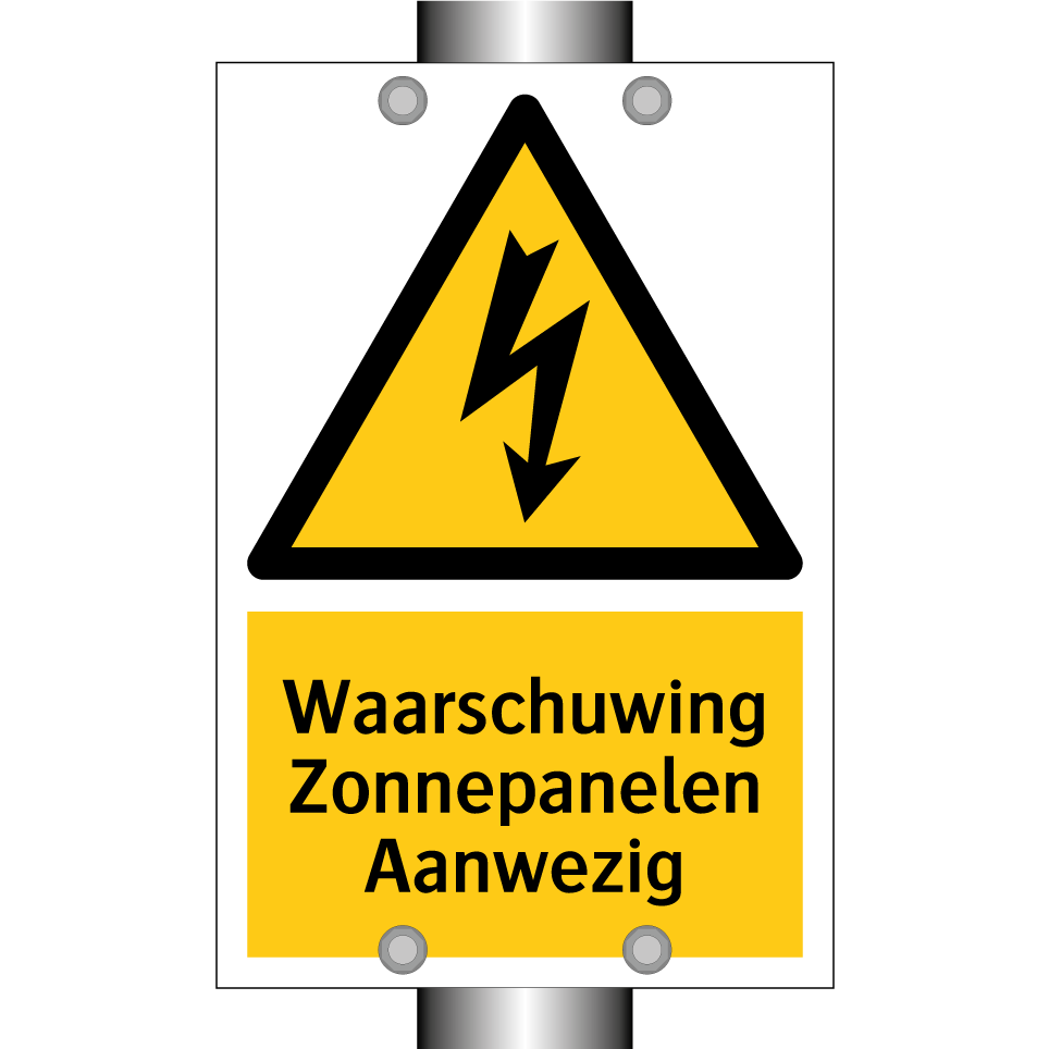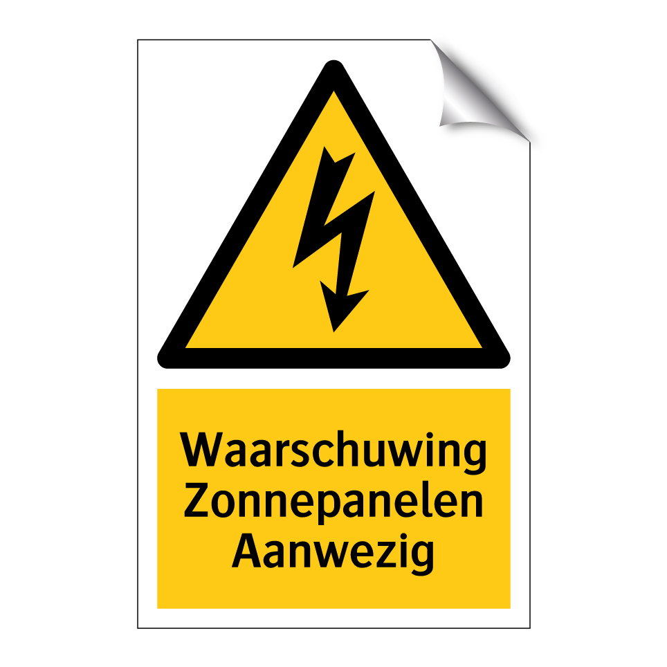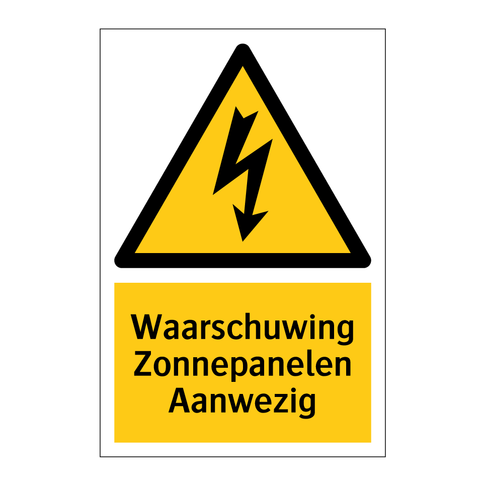 Waarschuwingsbord met de tekst Waarschuwing Zonnepanelen Aanwezig