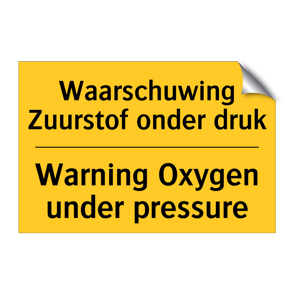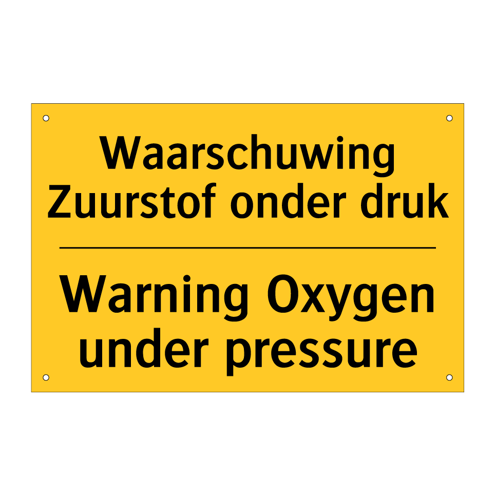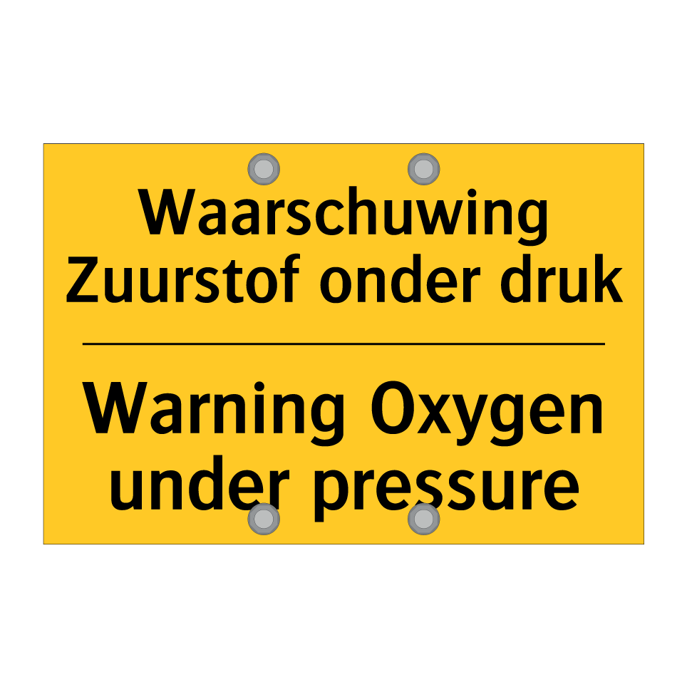 Waarschuwingsbord met de tekst Waarschuwing Zuurstof onder druk / Warning Oxygen under pressure