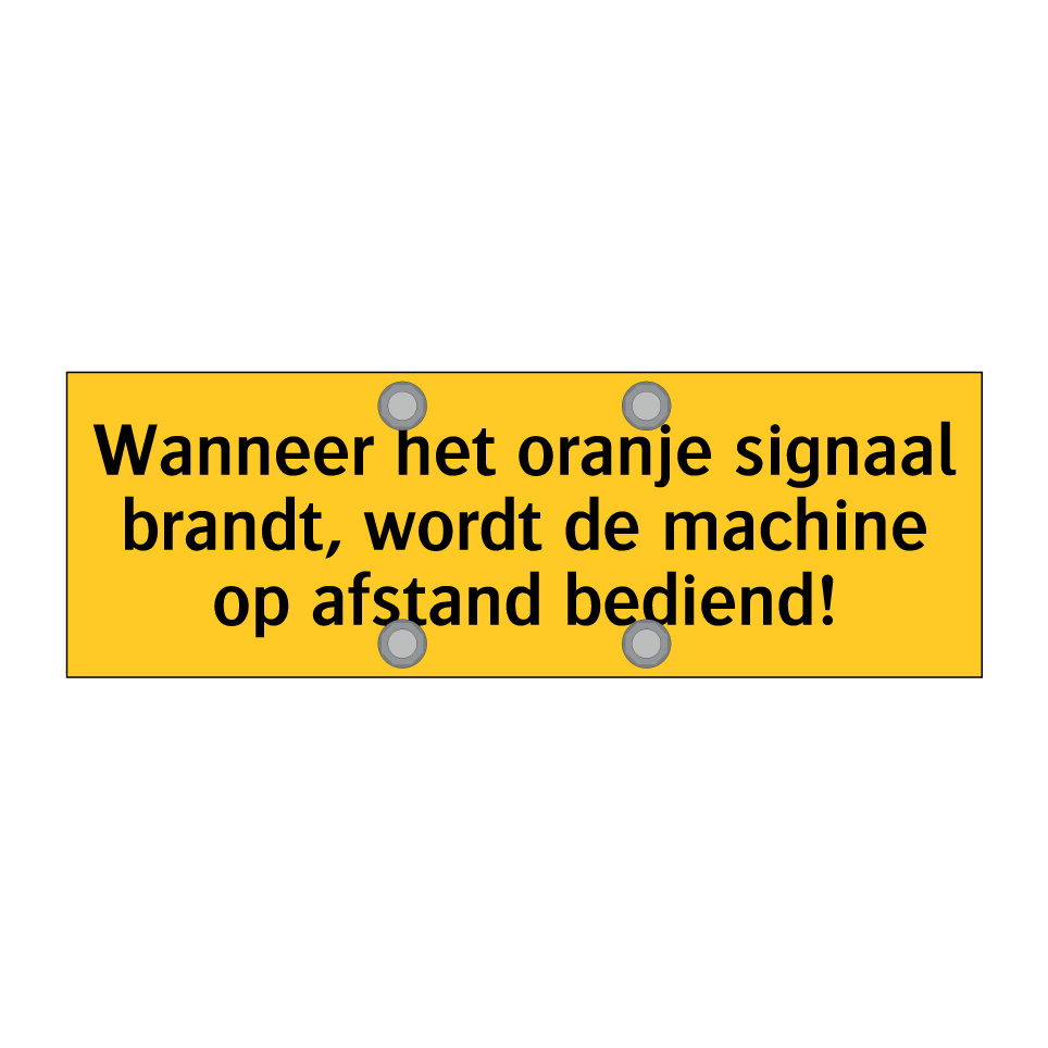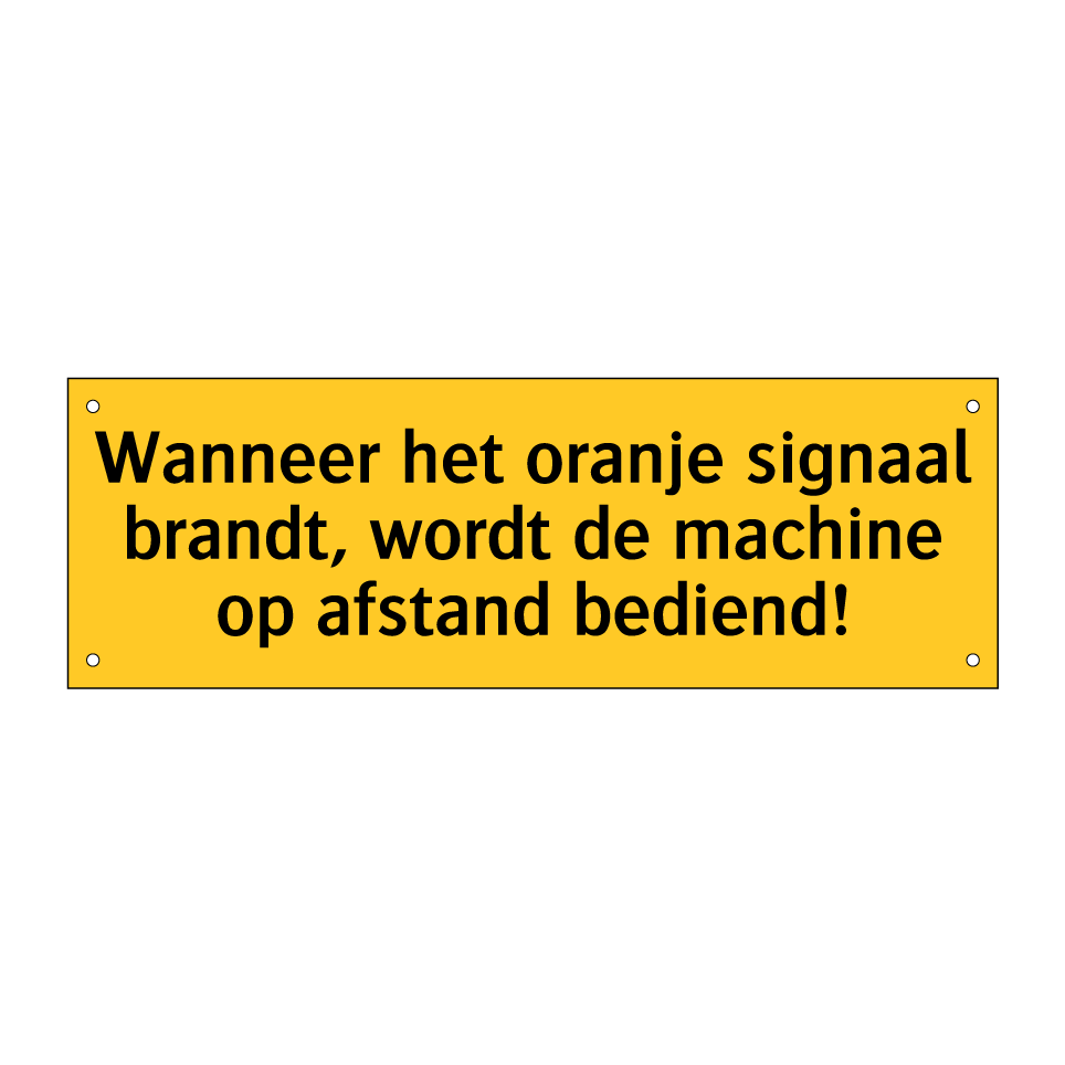 Waarschuwingsbord met de tekst Wanneer het oranje signaal brandt, wordt de machine op afstand bediend!