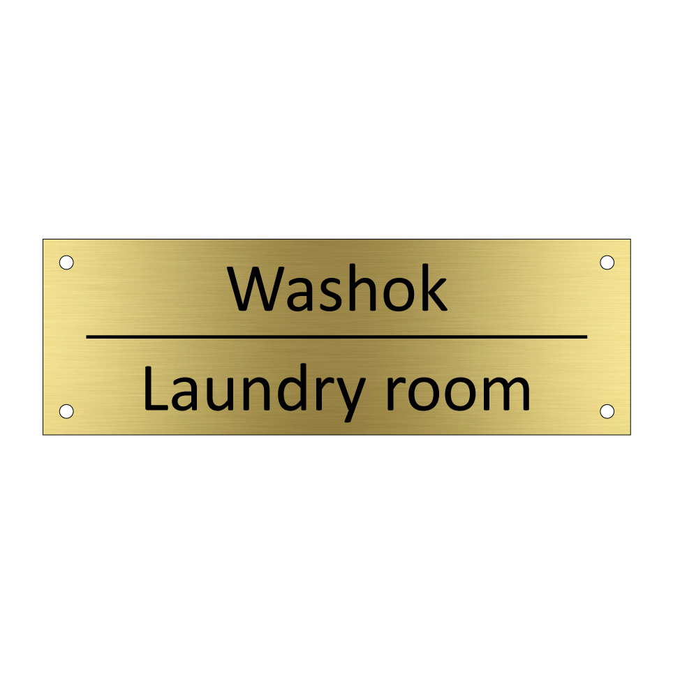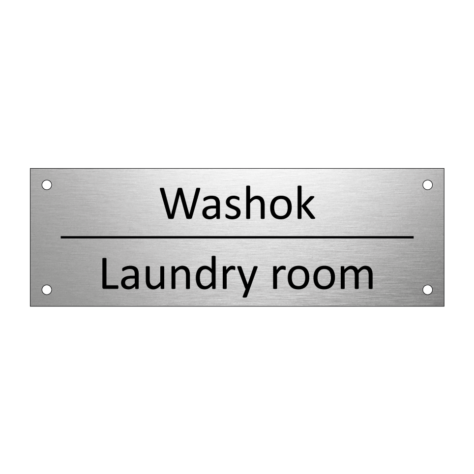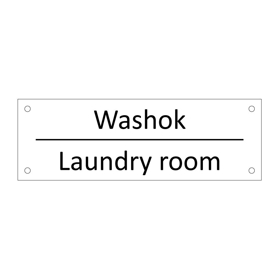 Informatiebord met tekst in het nederlands en engels. Dit bord luidt: Washok evenals met de engelse vertaling Laundry room.