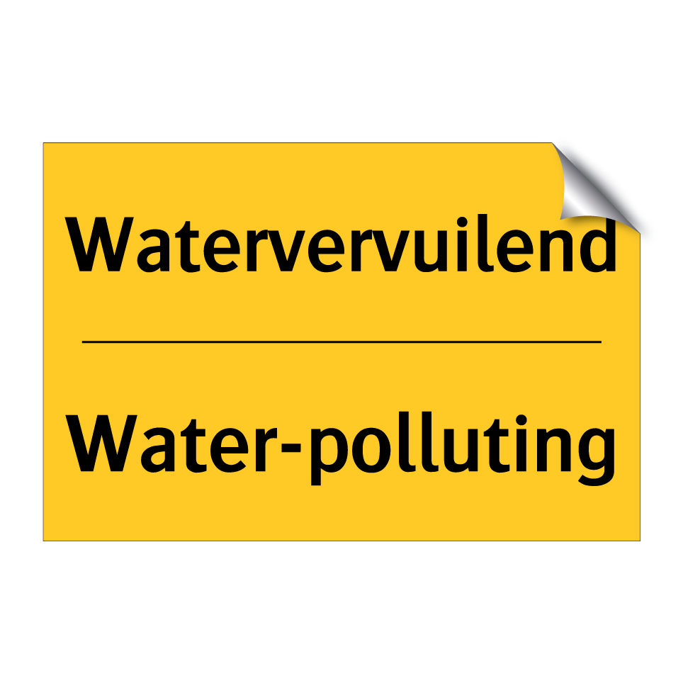 Waarschuwingsbord met de tekst Watervervuilend / Water-polluting