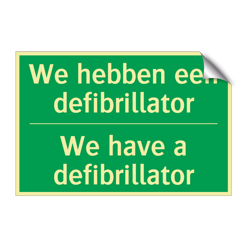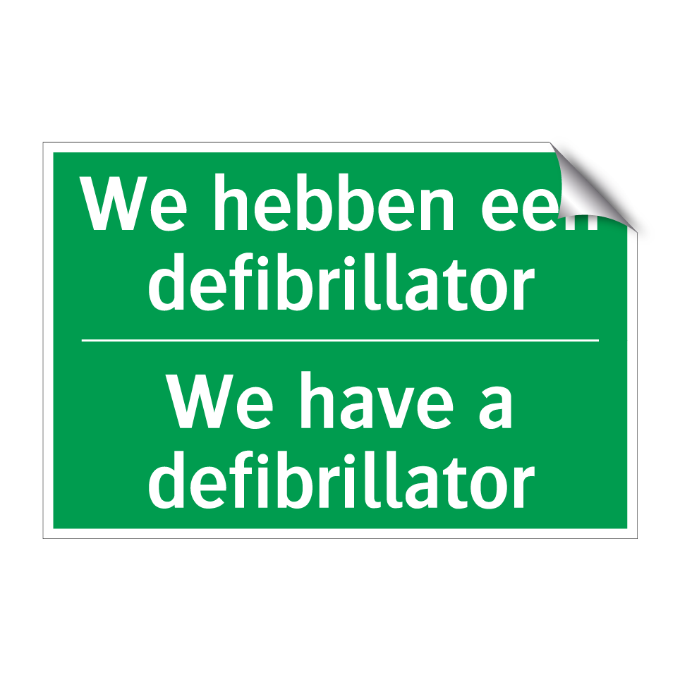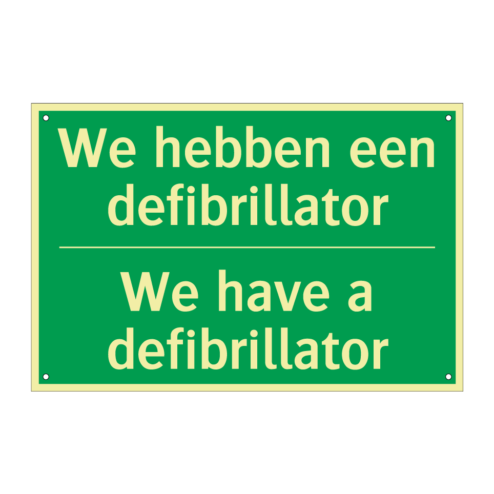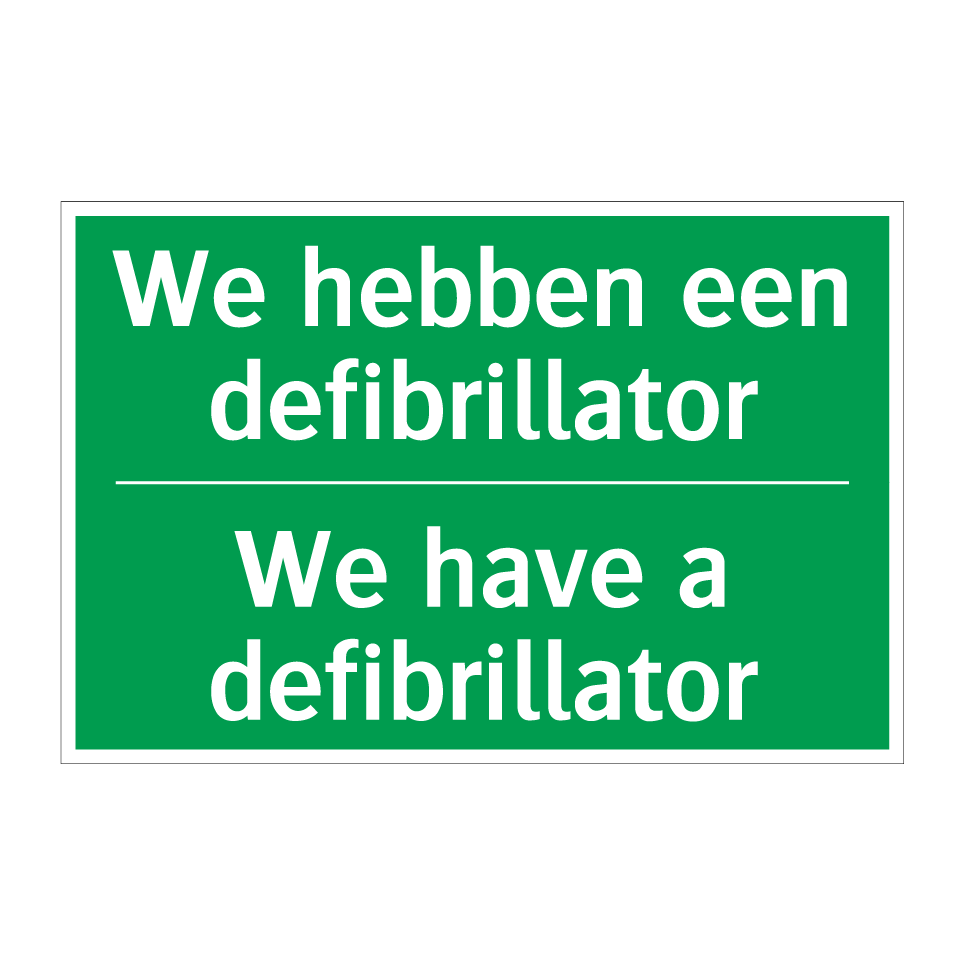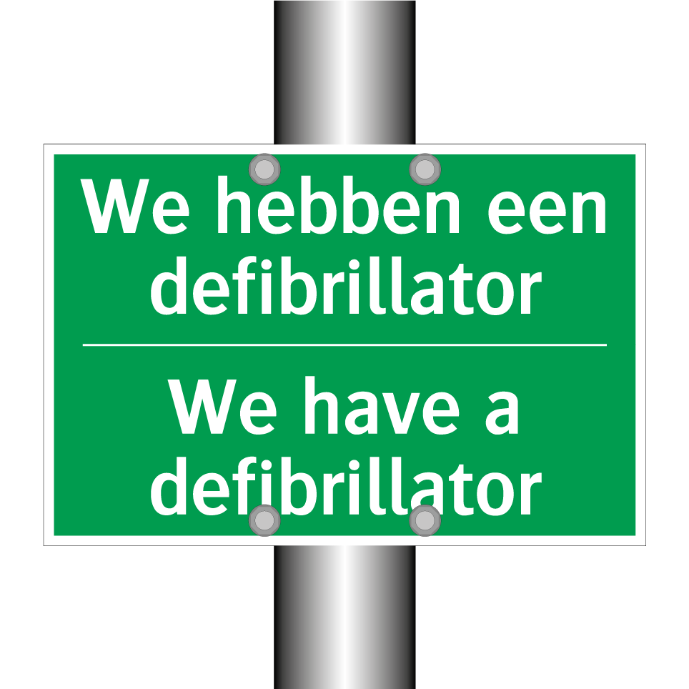 Noodbord met tekst We hebben een defibrillator / We have a defibrillator