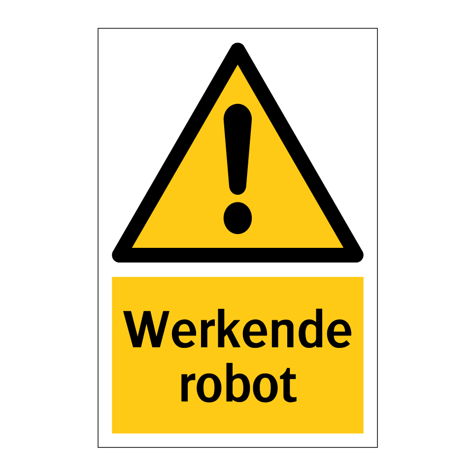 Deze waarschuwingsbord is essentieel voor het waarborgen van de veiligheid in omgevingen waar robots actief zijn. Plaats deze bord op strategische locaties zoals fabrieken, magazijnen en werkplaatsen om personeel te waarschuwen voor de aanwezigheid van werkende robots. Door deze bord duidelijk zichtbaar te maken, kunnen ongelukken en verwondingen worden voorkomen. Ideaal voor gebruik in industriële omgevingen, helpt deze waarschuwingsbord om een veilige werkomgeving te handhaven. Zorg ervoor dat iedereen op de hoogte is van de gevaren en blijf compliant met veiligheidsvoorschriften door deze bord te installeren.