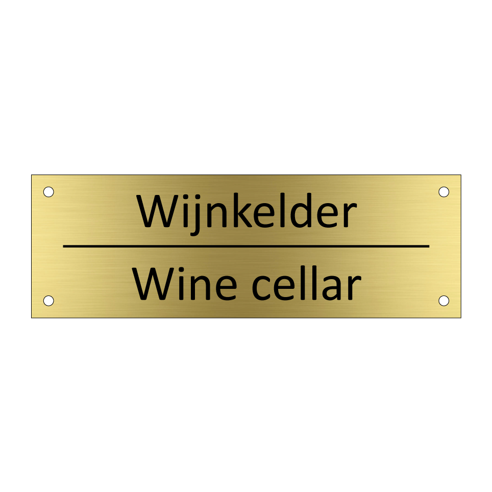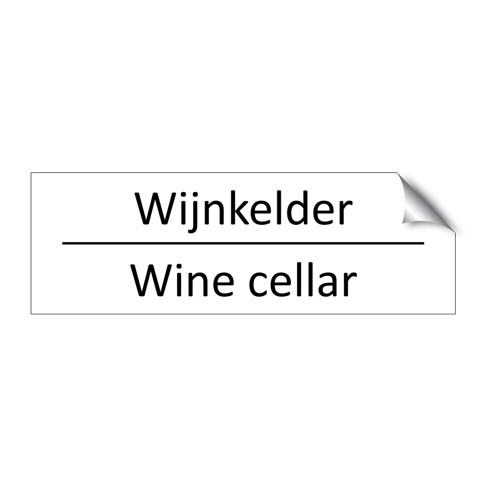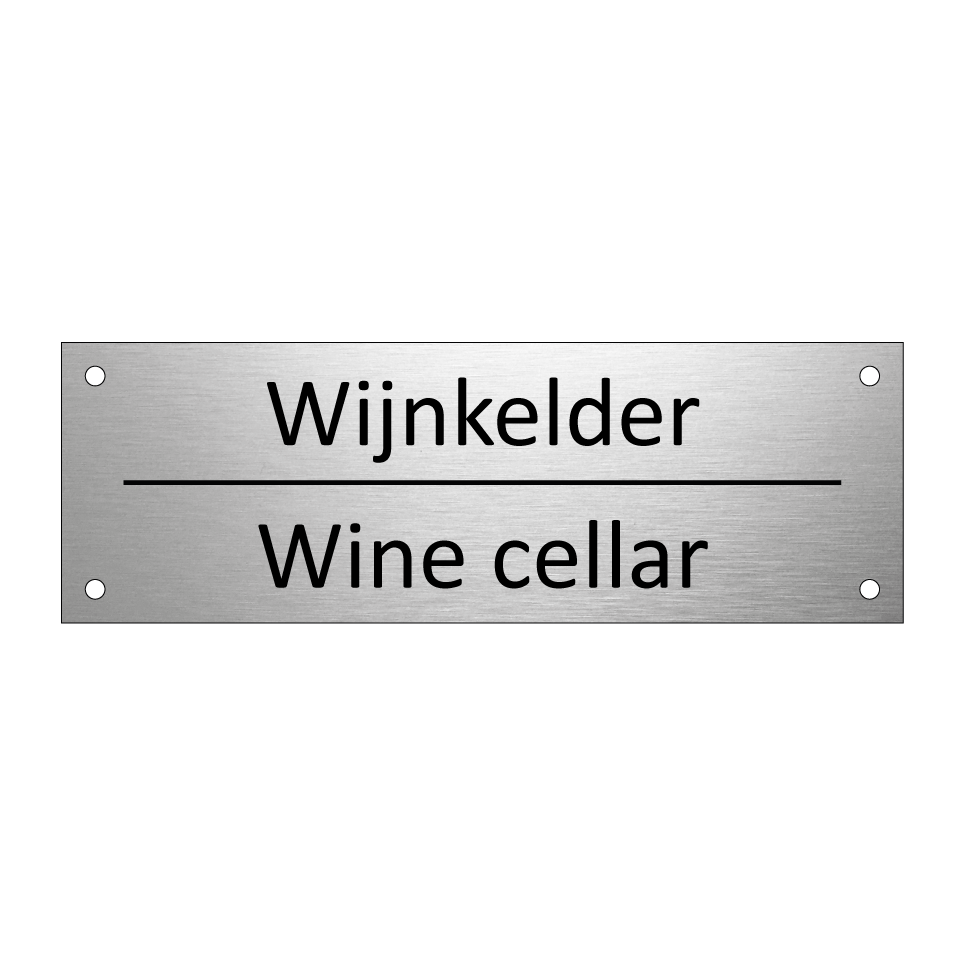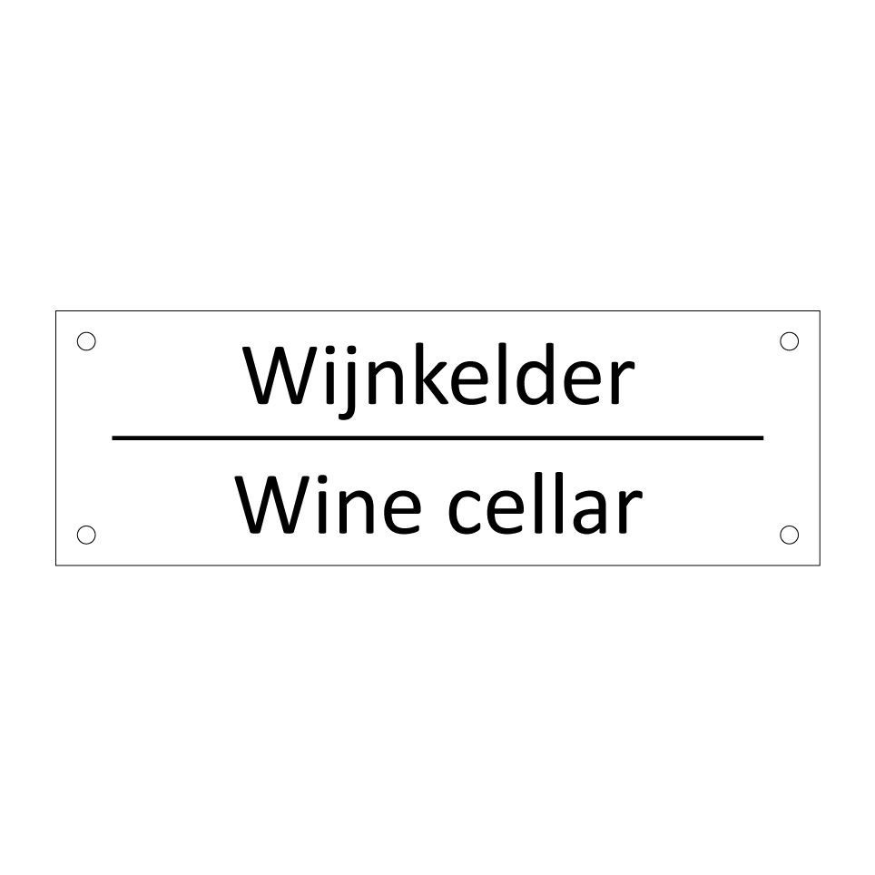 Informatiebord met tekst in het nederlands en engels. Dit bord luidt: Wijnkelder evenals met de engelse vertaling Wine cellar.