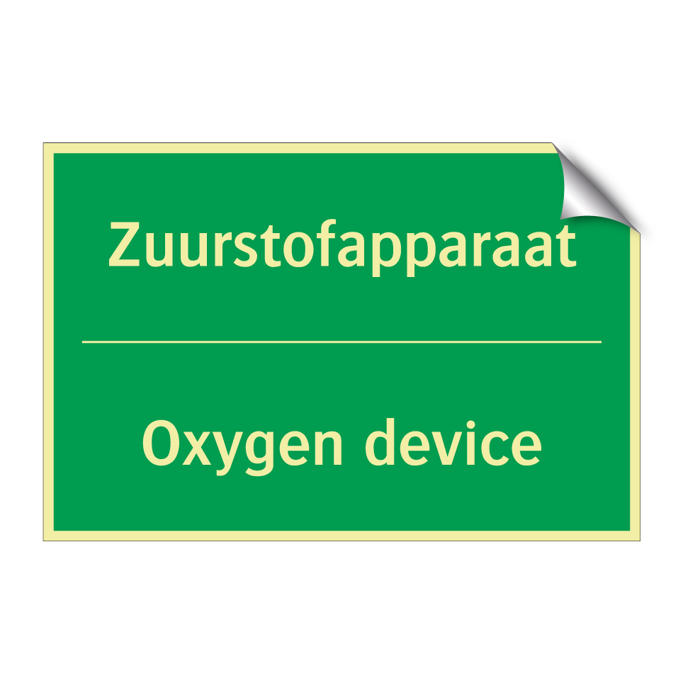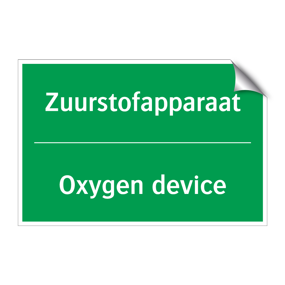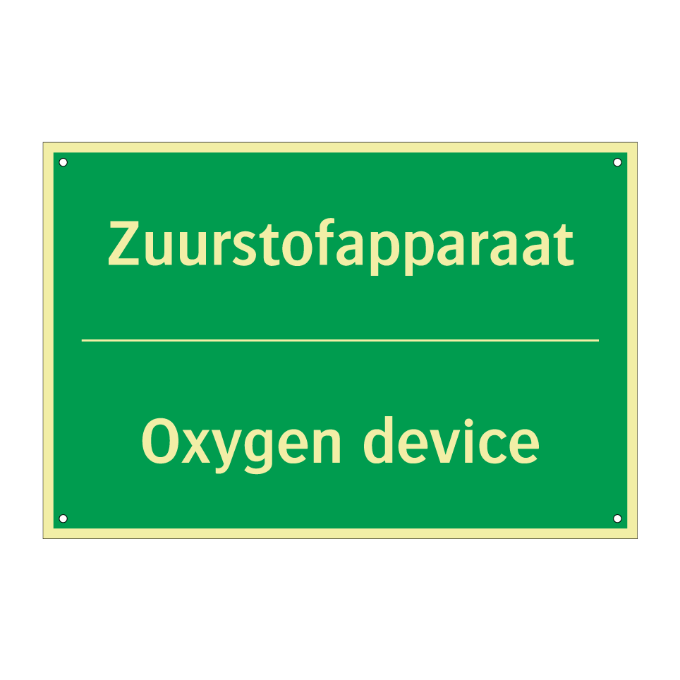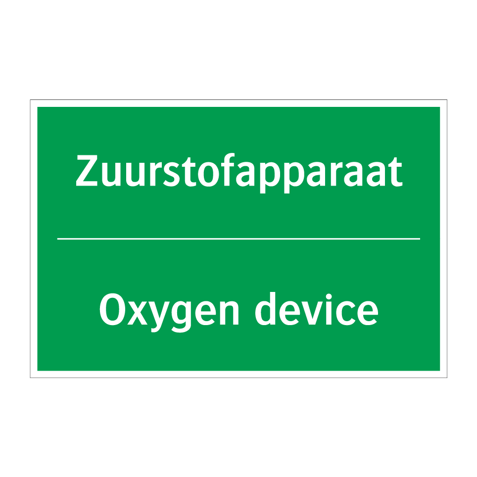 Noodbord met tekst Zuurstofapparaat / Oxygen device